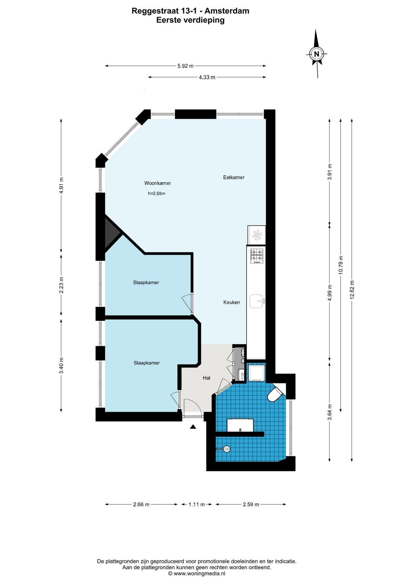 Via de gemeenschappelijke entree aan de Reggestraat bereikt u het verzorgde trappenhuis en de eigen voordeur op de eerste verdieping.